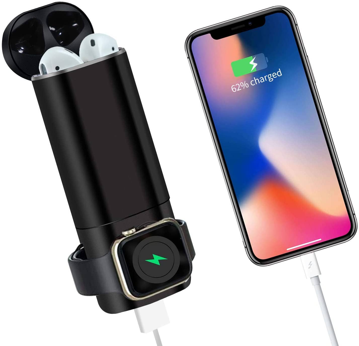 Say goodbye to the hassle of carrying multiple chargers with the portable 3-in-1 Power Bank. This innovative device allows you to wirelessly charge your Apple Watch and AirPods, while also featuring a USB output port for charging your Android or iOS smartphone with a cable. With a powerful 5200mAh battery capacity, this power bank can fully charge up to three devices on a single charge. The compact and lightweight design makes it easy to take with you wherever you go, and it can easily fit in the palm of your hand. Say hello to convenience and efficiency with the Portable 3-in-1 Power Bank.