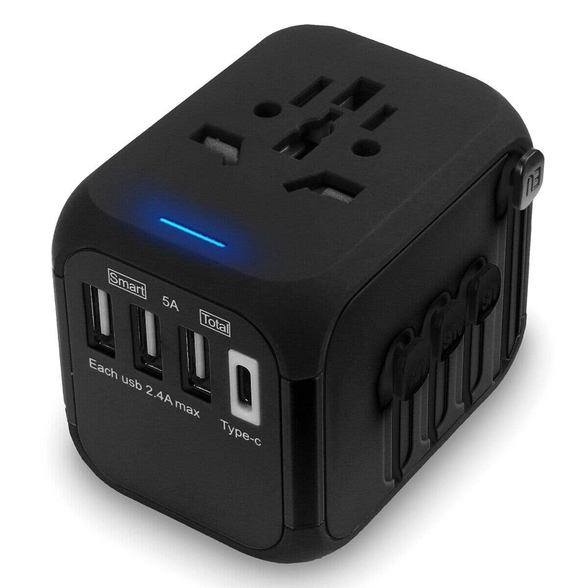 [TYPE C AND SMART USB FAST CHARGER] -The travel power adapter has 3 USB port and 1 Type C interface, 1 AC Socket with smart IC chip which can recognize the different devices, automatically charge 5 devices simultaneously, including :